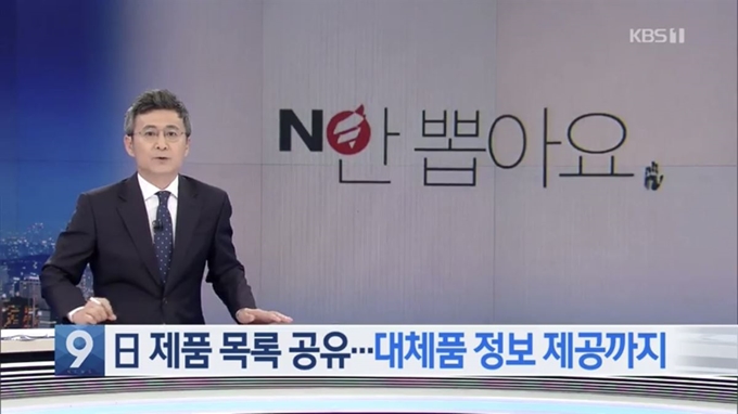 3일 전인 지난 18일 KBS는 일본 제품 불매운동을 상징하는 문구에 자유한국당 로고를 삽입, 노출해 ‘정치 편향' 보도로 공정성 시비가 불거졌다.